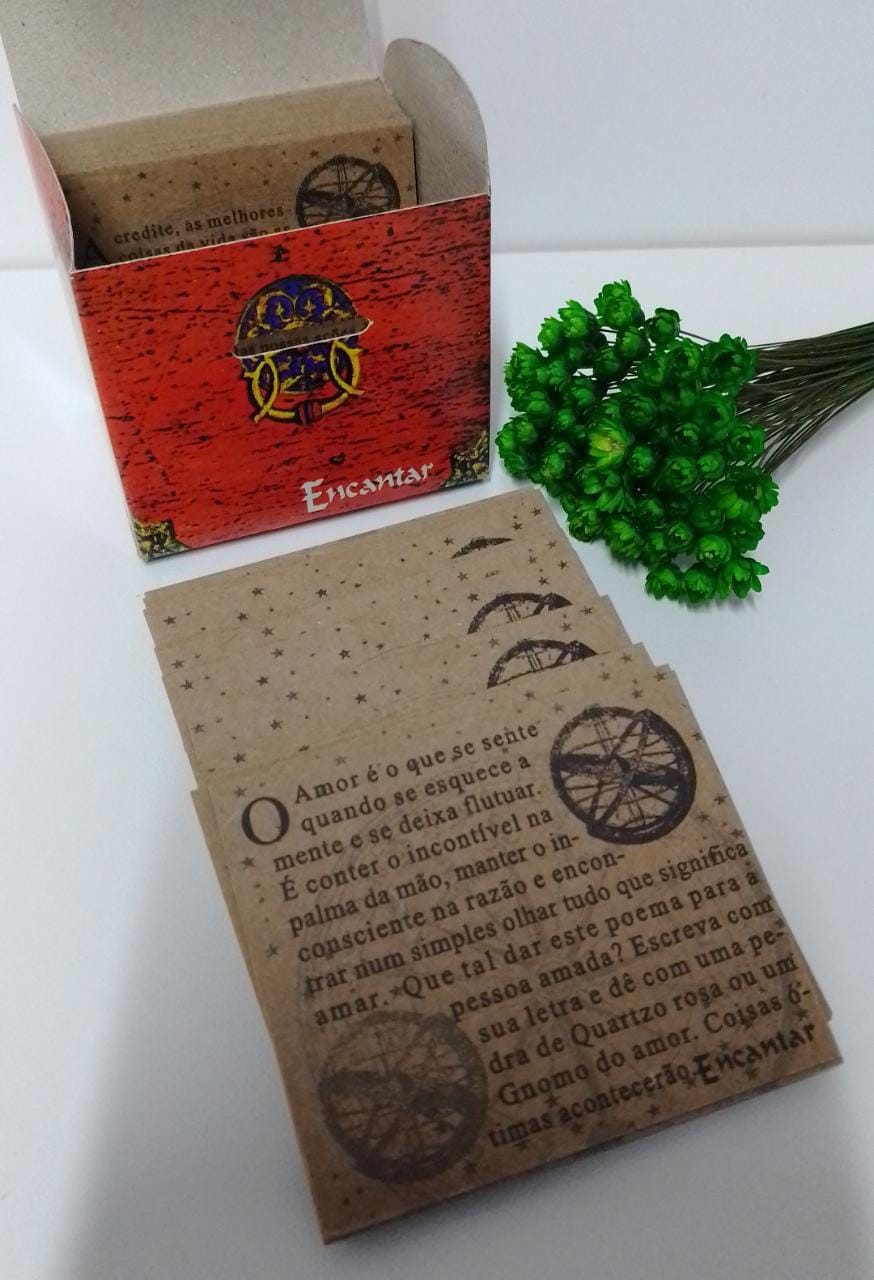 Confeccionado: Papel cartão grosso, bem impresso, sempre com uma mensagem nova para refletir no seu dia a dia.